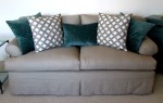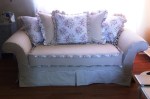 My specialties are custom fitted slipcovers and new seat cushions, bolsters and pillows. Slipcovers are an instant room makeover and easy to change for a seasonal look. Machine washable slipcovers are great around kids and pets. Contact: sandy@sandyallikas.com